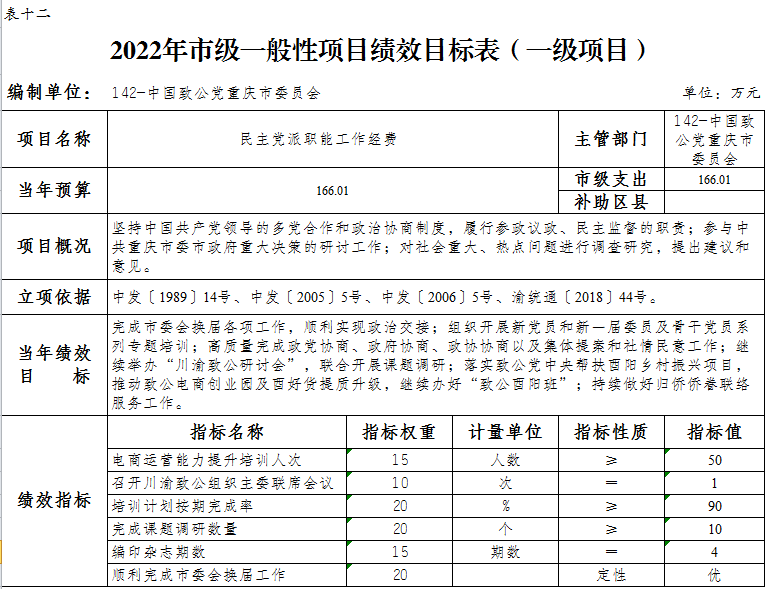 中國(guó)致公黨重慶市委員會(huì)2022年部門(mén)預(yù)算情況說(shuō)明